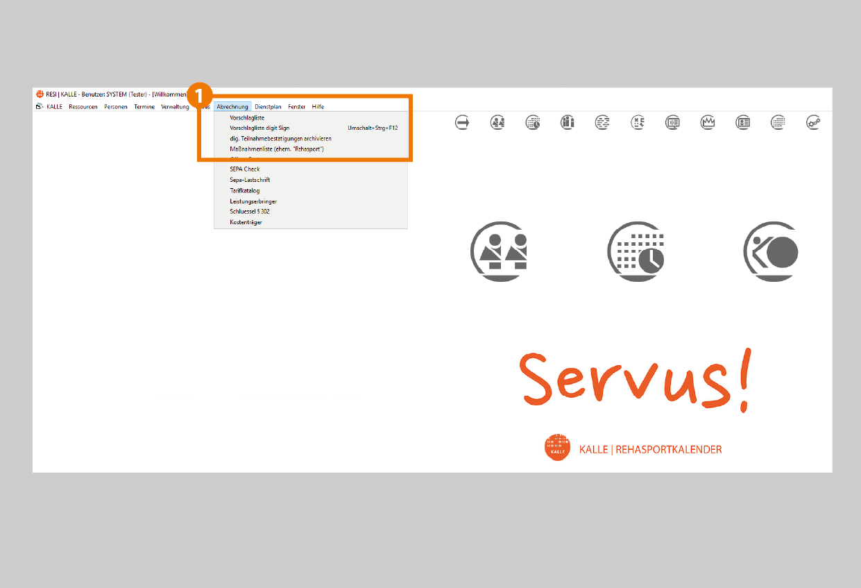 - Nach Bearbeitung der Abrechnungsvorschlage öffnen Sie die Rehasportabrechnung über den Menüpunkt "Abrechnung" / "Maßnahmenliste".