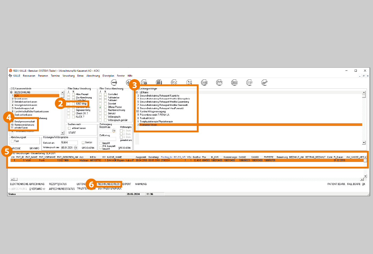 Beachten Sie hierbei, dass in der Regel die Verordnungen der DRV (Deutsche Rentenversicherung) erst zum Ende der Verordnung und die Verordnungen der BG (Berufsgenossenschaft) halbjährlich zwischenabgerechnet bzw. zum Ende der Verordnungen komplett abrechnetet werden können.