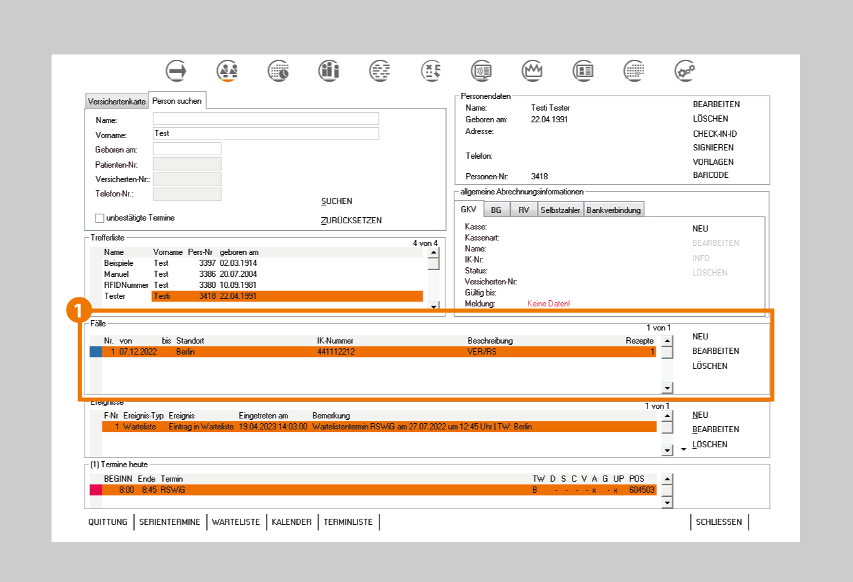 - Suchen Sie die Person und öffnen Sie den betreffenden Fall über "BEARBEITEN".