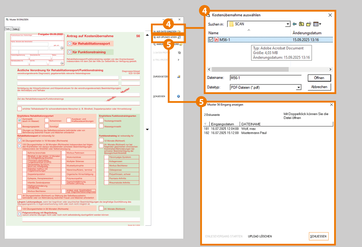 3. ggf. Schreiben der Kasse als ein PDF Dokument ein.