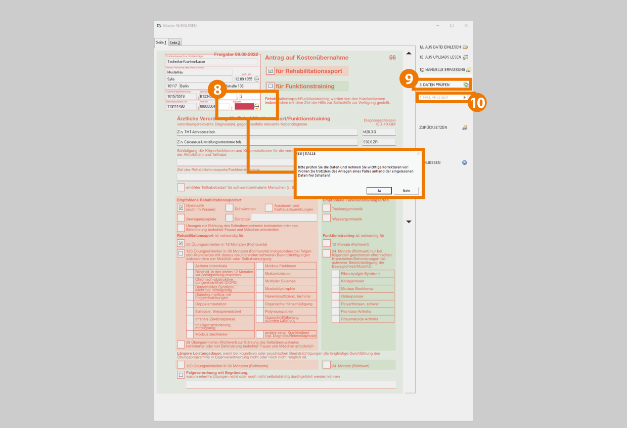 - Nun können Sie entscheiden, ob das Anlegen des Falls dennoch freigeschaltet werden soll oder ob dies bis zur erneuten Prüfung mit "3. DATEN PRÜFEN" blockiert bleiben soll.