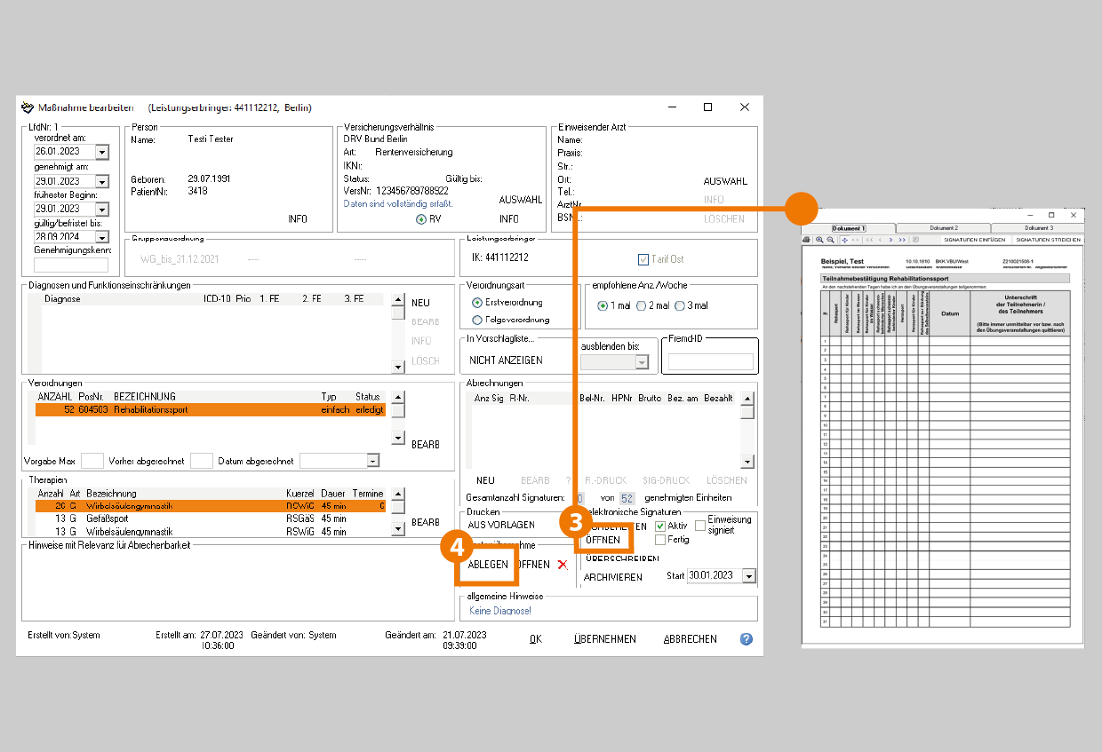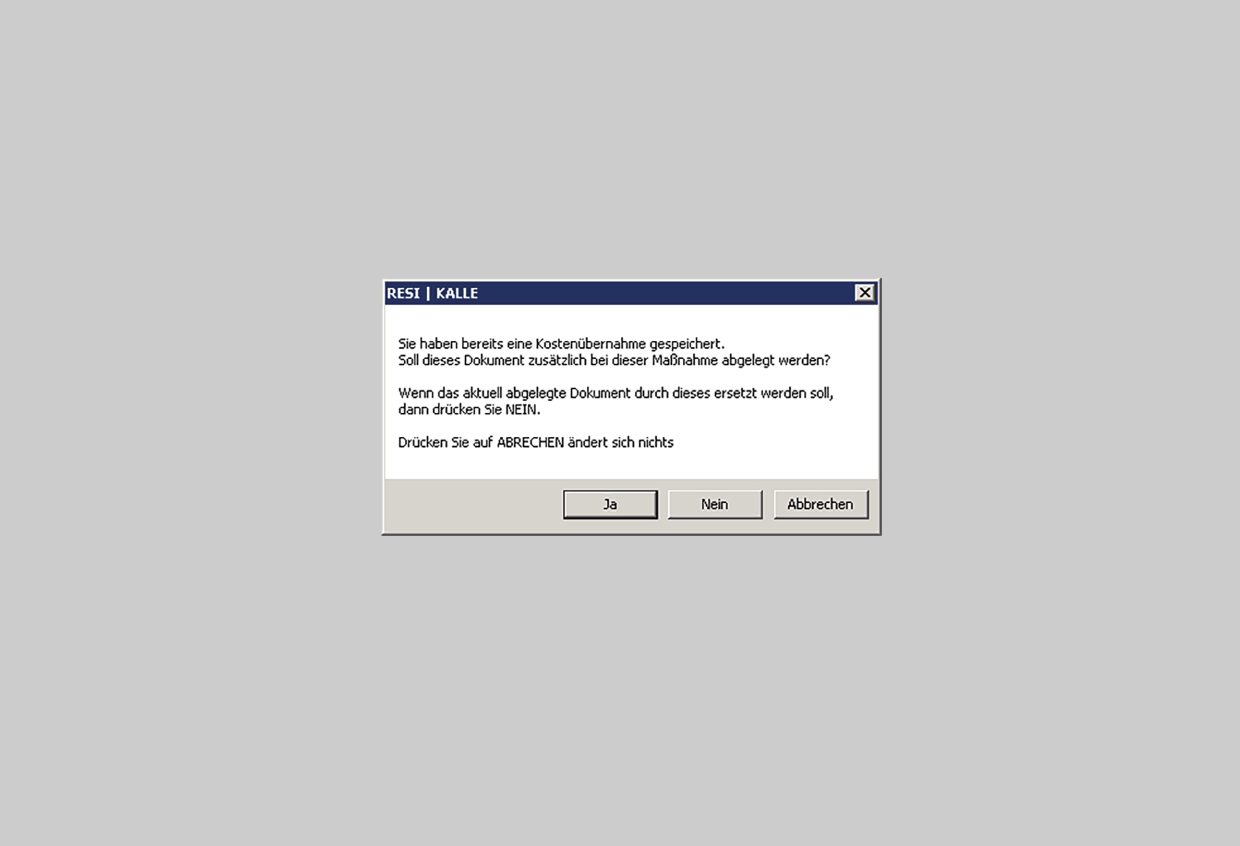 Falls bereits eine Kostenübernahme abgelegt ist, ist es möglich ein zusätzliches Originaldokument (z.B. bei einer Verlängerungsgenehmigung) abzulegen. Beachten Sie hierfür den Dialog der angezeigten Abfrage.