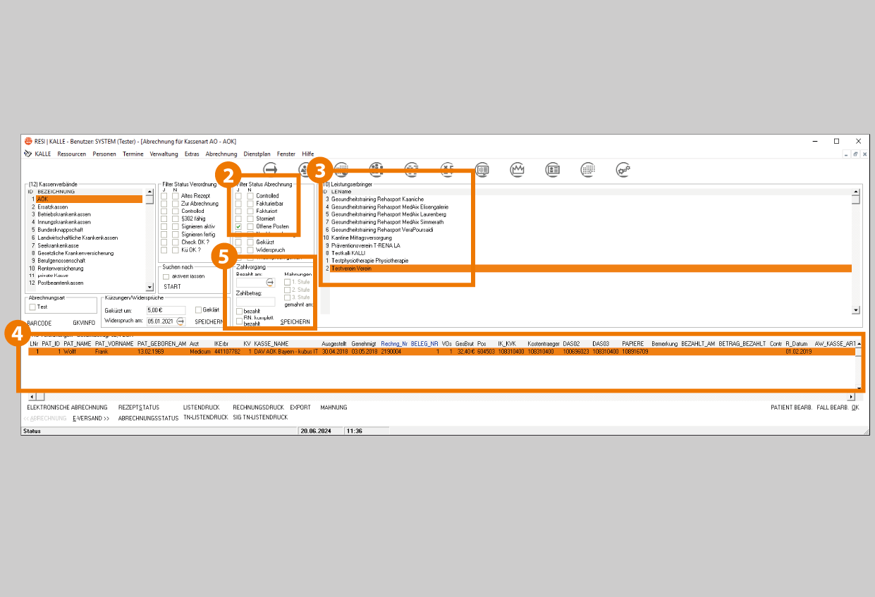 Überfällige Abrechnungen können im Bereich "RS Verordnung" anhand des Rechnungsdatums ermittelt und die Krankenkasse an die Zahlung erinnert werden. |