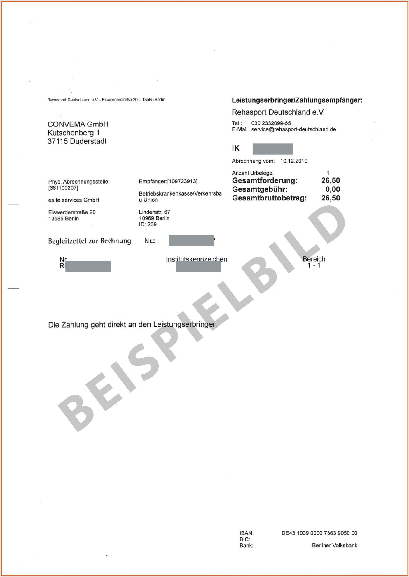 Danach wird automatisch das Drucken des Begleitzettels und der Rechnung angeboten. Der Begleitzettel stellt das Deckblatt für alle Papiere mit gleicher Rechnungsnummer | Krankenkasse dar. Das bedeutet, dass Sie entsprechend der Rechnungs- und Belegnummern Papiere stapeln und oben den Begleitzettel auflegen und das ganze in einen Briefumschlag mit Fenster stecken und absenden. Die Rechnung können Sie auch dazu verwenden, um die Papiere im Nachhinein zu sortieren, wenn Sie dies vor dem Sendeprozess noch nicht erledigt hatten. Außerdem ist dies der Beleg für Ihre Buchhaltung. Diesen Prozess wiederholen Sie mit allen Auftragsdateien bis die Liste komplett abgearbeitet wurde. Wenn Sie mit dem KALLE mehrere Leistungserbringer abrechnen, wiederholen Sie das Prozedere mit dem nächsten Leistungserbringer.