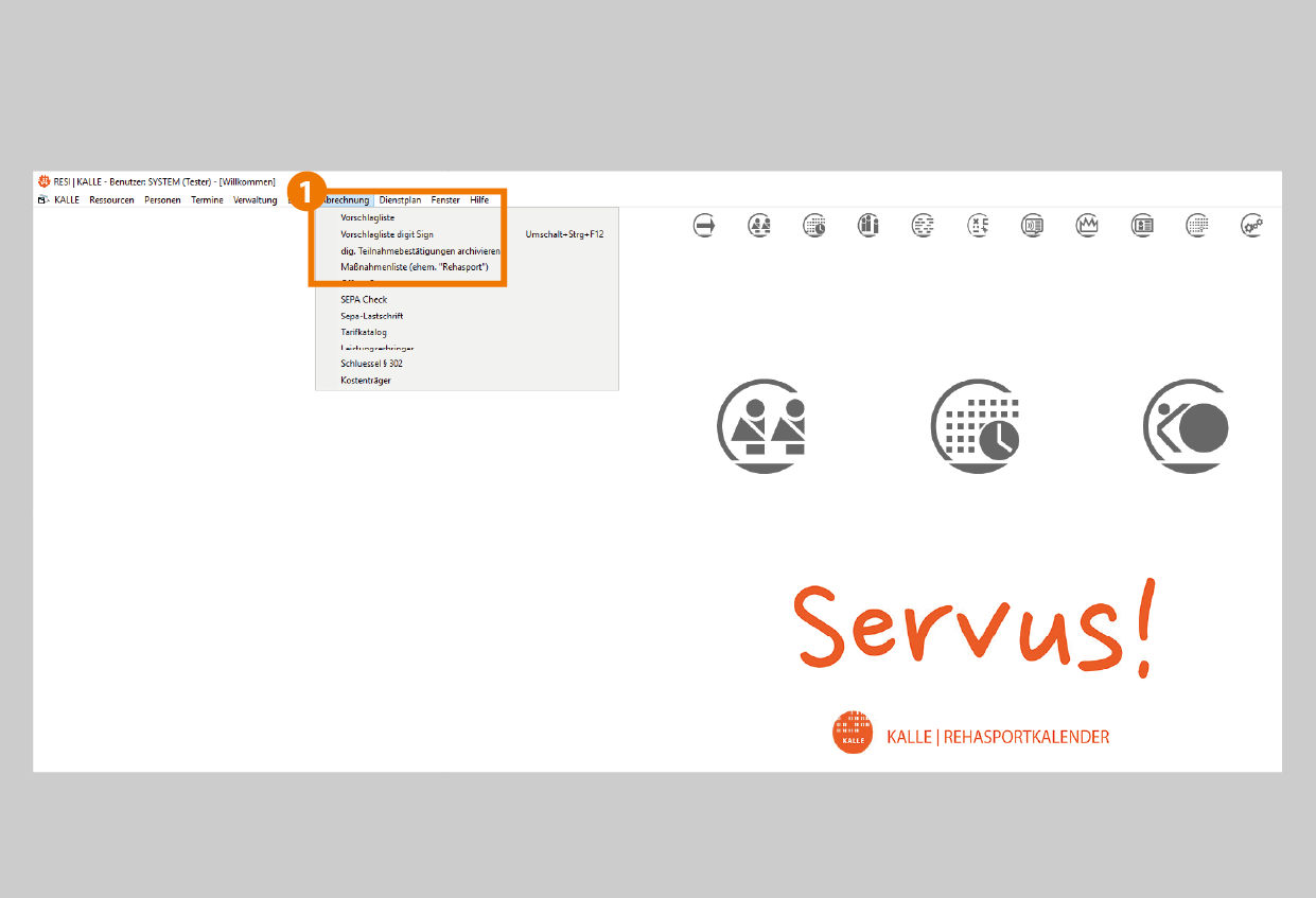 - In der Menüleiste "Abrechnungen" wählen Sie "Maßnahmenliste" aus.