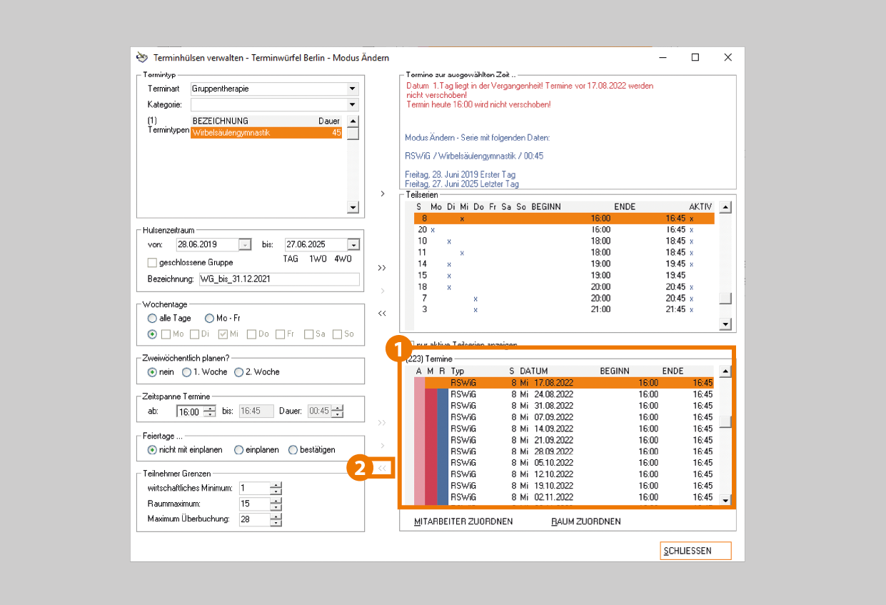 Achtung: Vor dem Löschen des Termins müssen alle Teilnehmer aus dem Gruppentermin entfernt werden. |