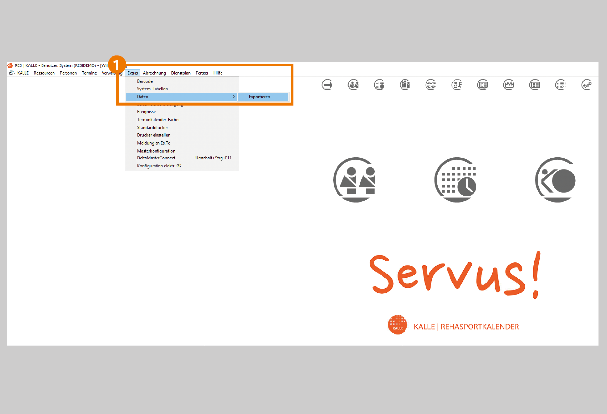 - Im Menüband finden Sie die Möglichkeit des Datenexports unter "Extras" , "Daten" und dann "Exportieren" .