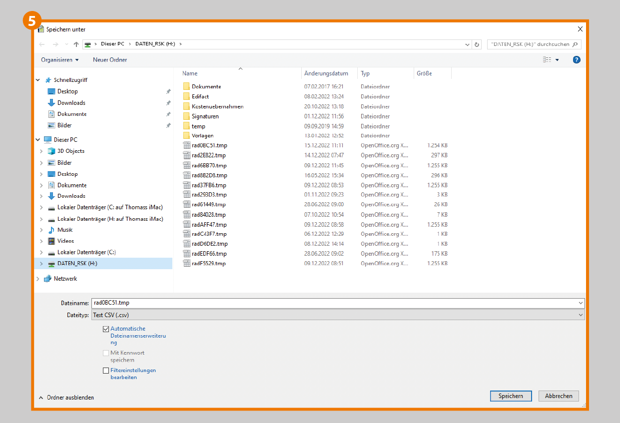 - Abschließend speichern Sie den Export unter "Datei" mit "Speichern unter" auf Ihrem lokalen PC.