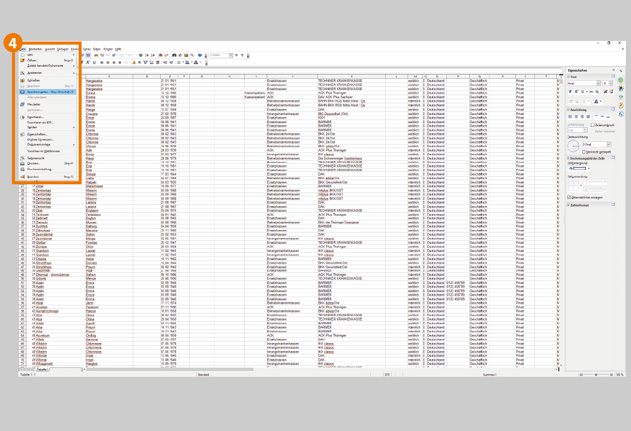 Jetzt wurde der Export in OpenOffice geöffnet und kann bearbeitet werden.