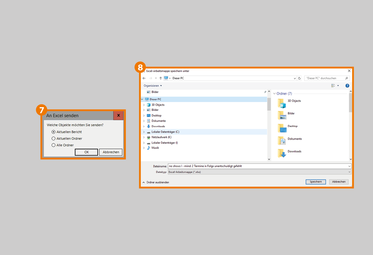 - wählen Sie bei Verfahren das Dateiformat ".xlsx" bzw. ".xls" aus.