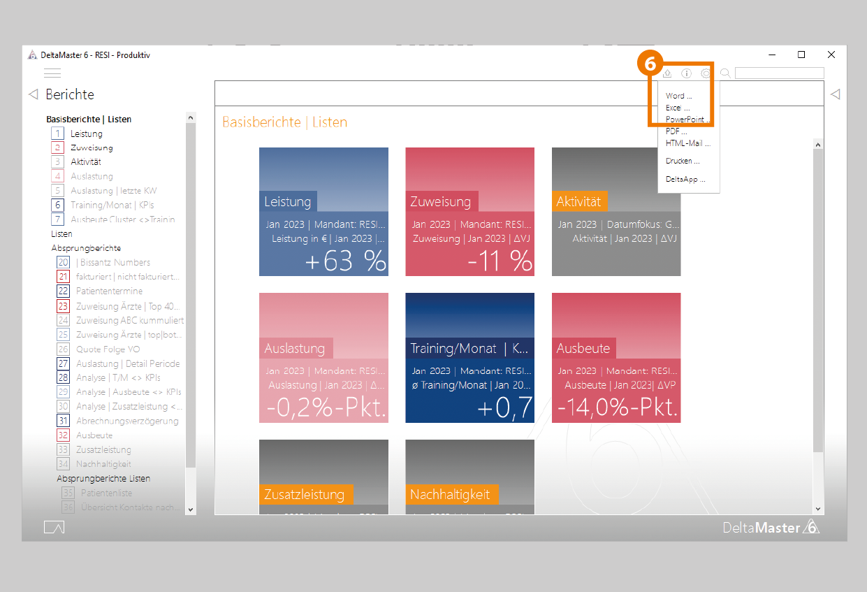 - Über den Exportbutton (dieser erscheint wenn Sie die Maus wieder an den oberen Rand des Fensters bewegen) ist nun der Export nach „Excel“ möglich.